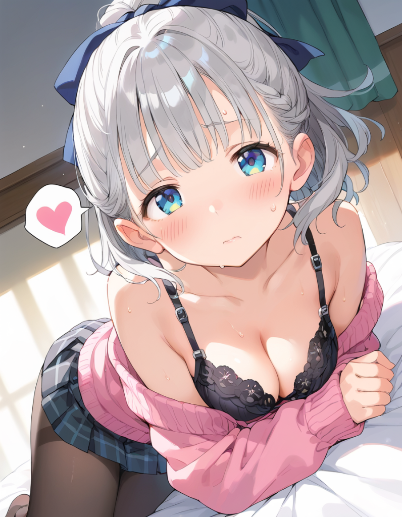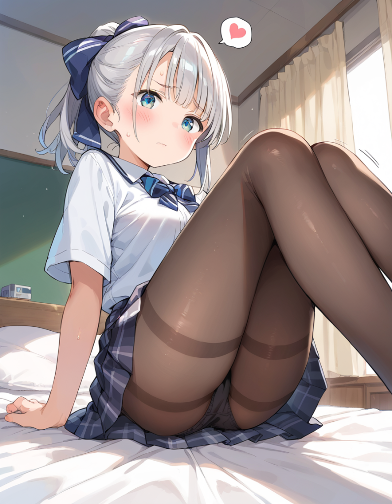【AIイラスト】銀髪ポニテの女の子のえっちなポーズと恥じらう姿が可愛いすぎる4【アニメ調】